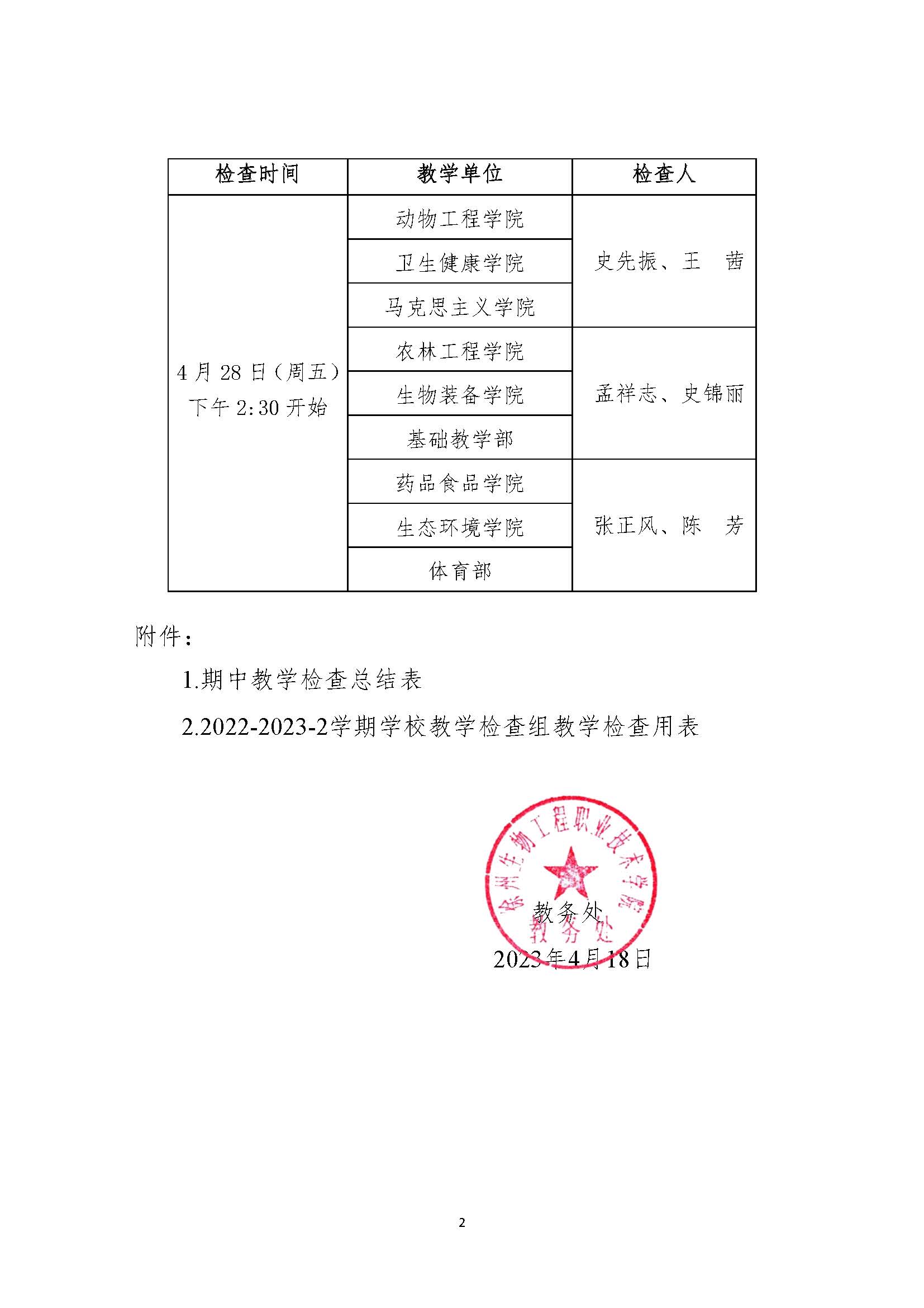 关于做好2022-2023学年第二学期期中教学检查的通知(徐生院教发〔2023〕6号)